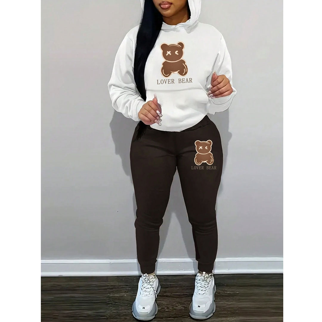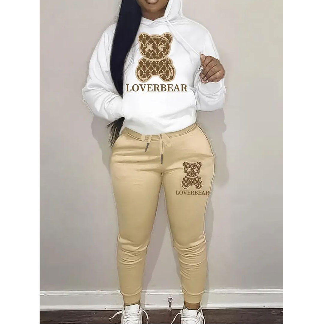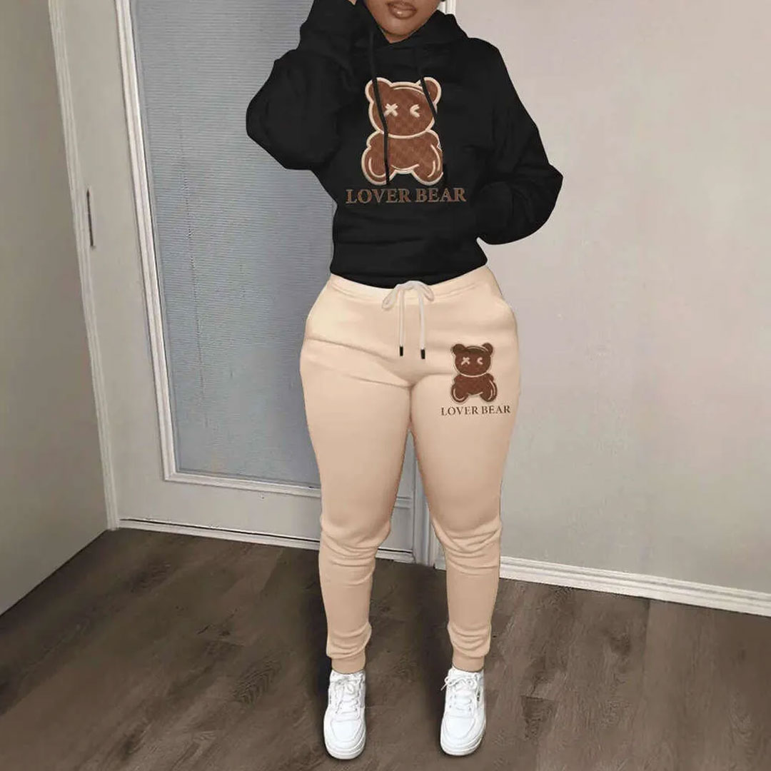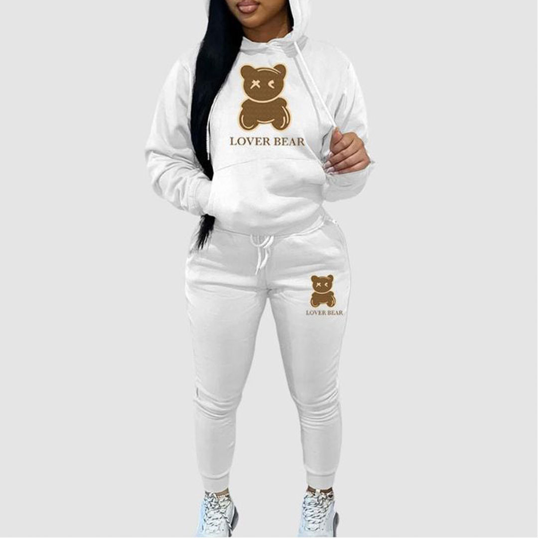New fashion cartoon bear print long-sleeved hoodie women’s sportswear two-piece set, the set includes: cartoon bear hoodie, cartoon bear pants