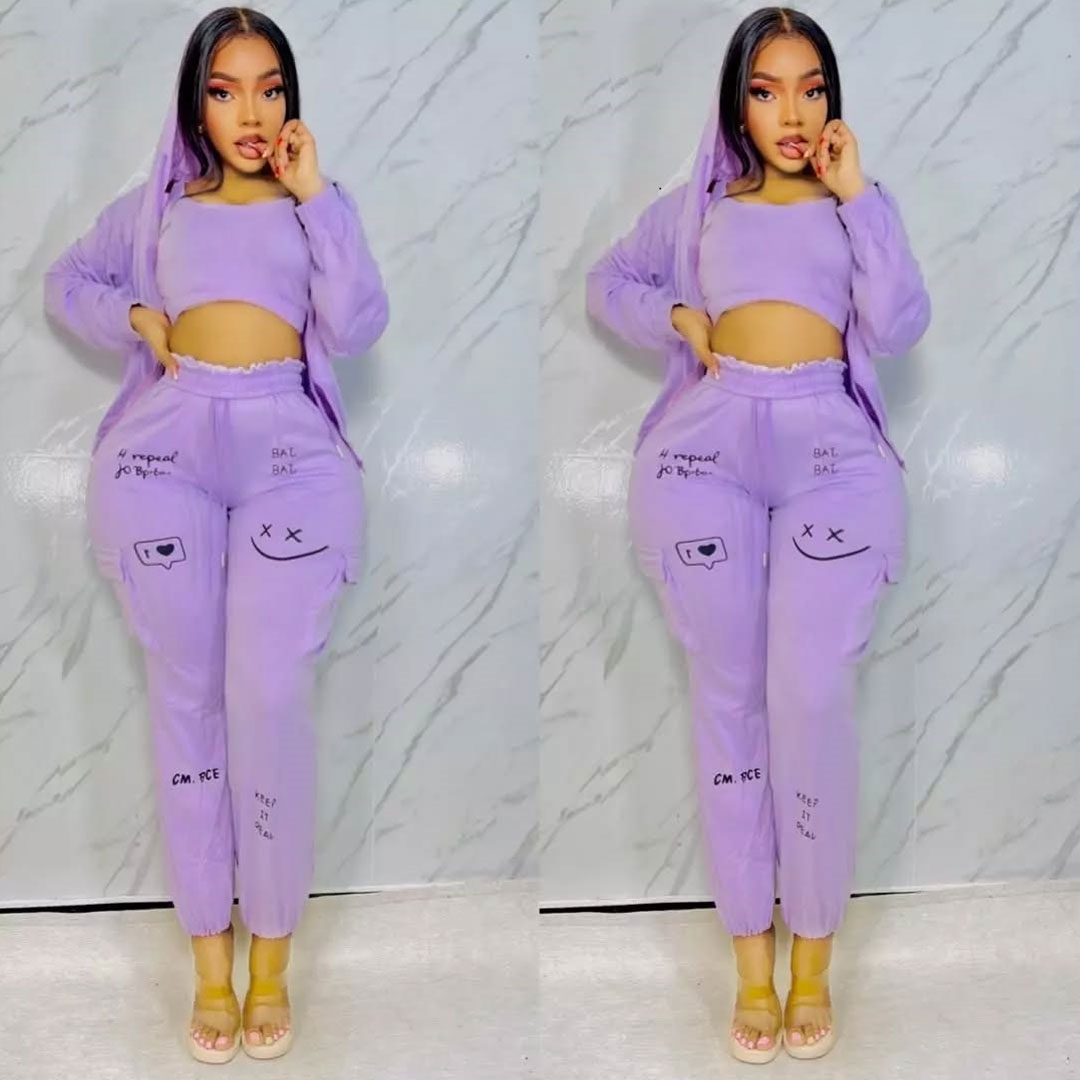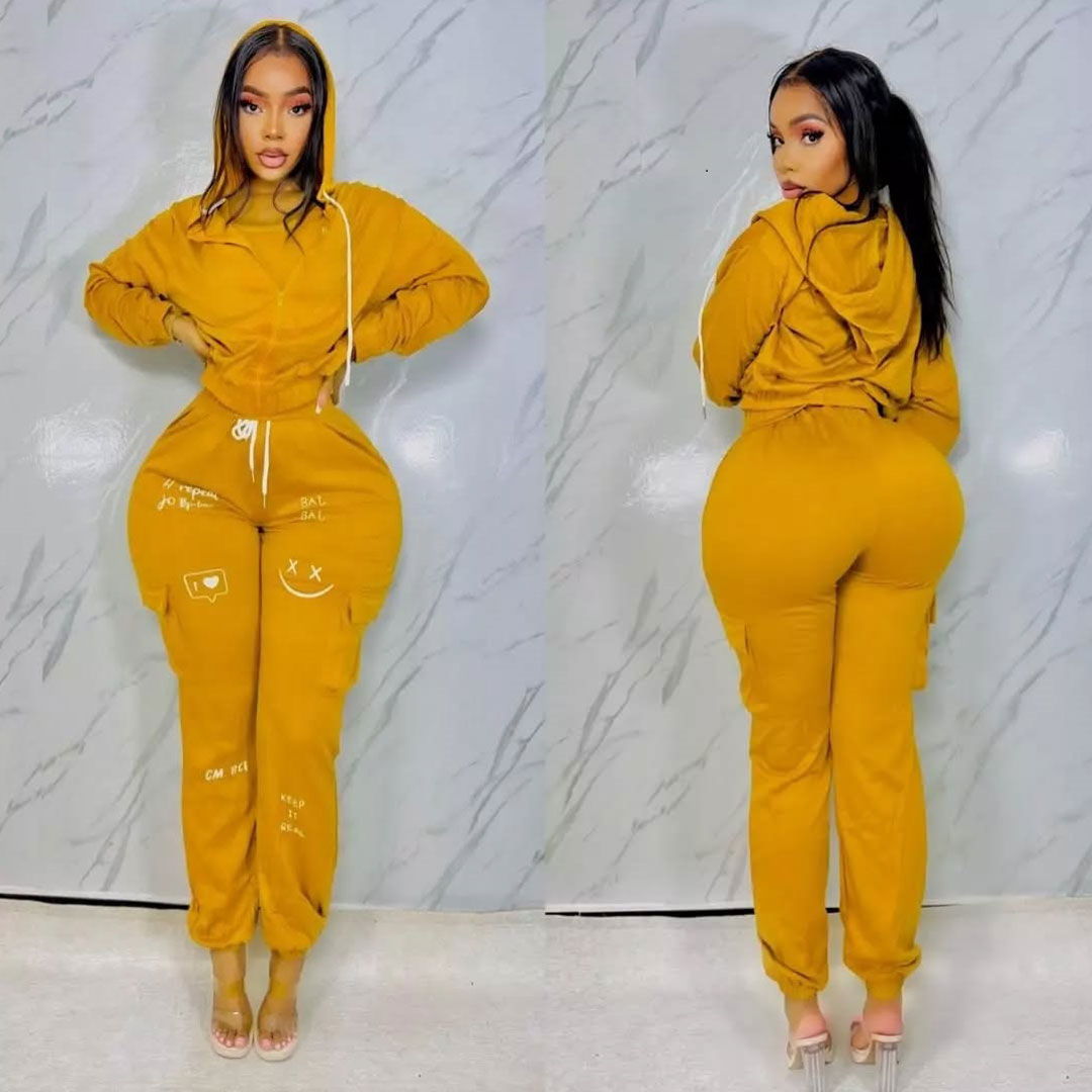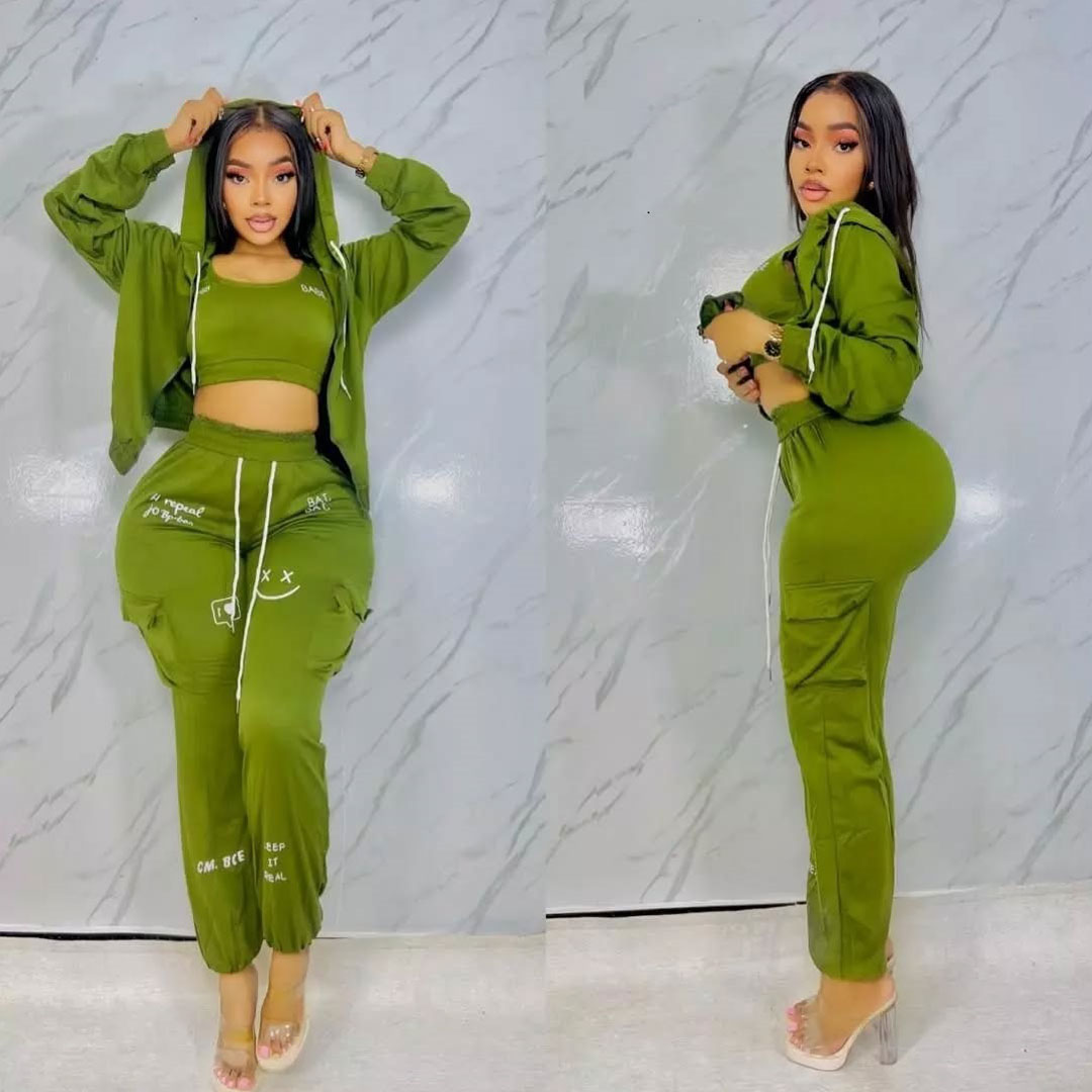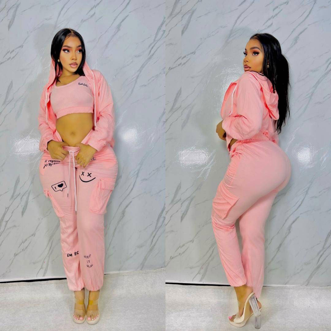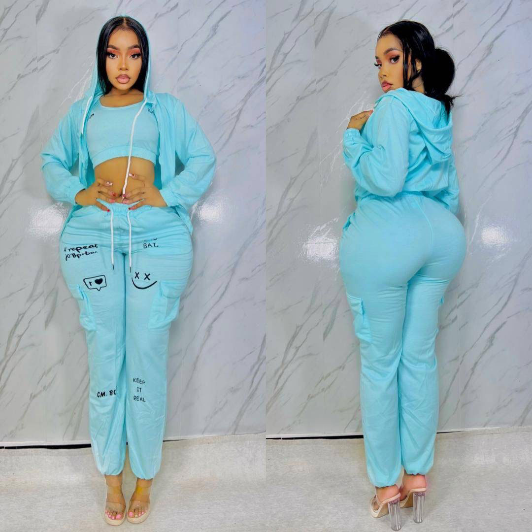 Comfortable casual knitted fabric zipper hoodie women’s printed sportswear three-piece set, the set includes: zipper hoodie, printed pants, printed vest