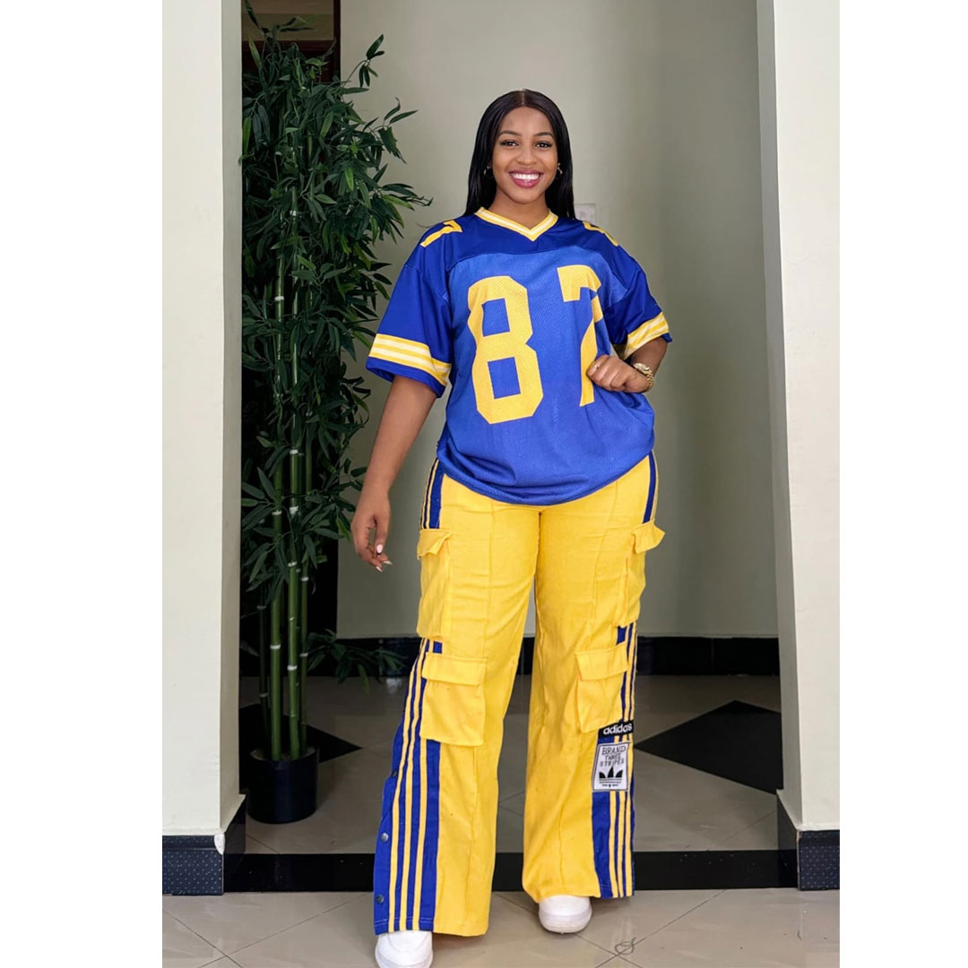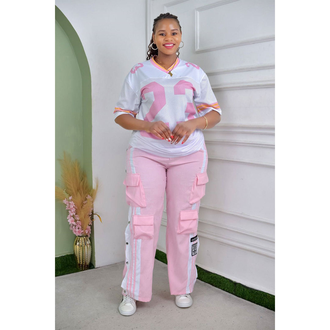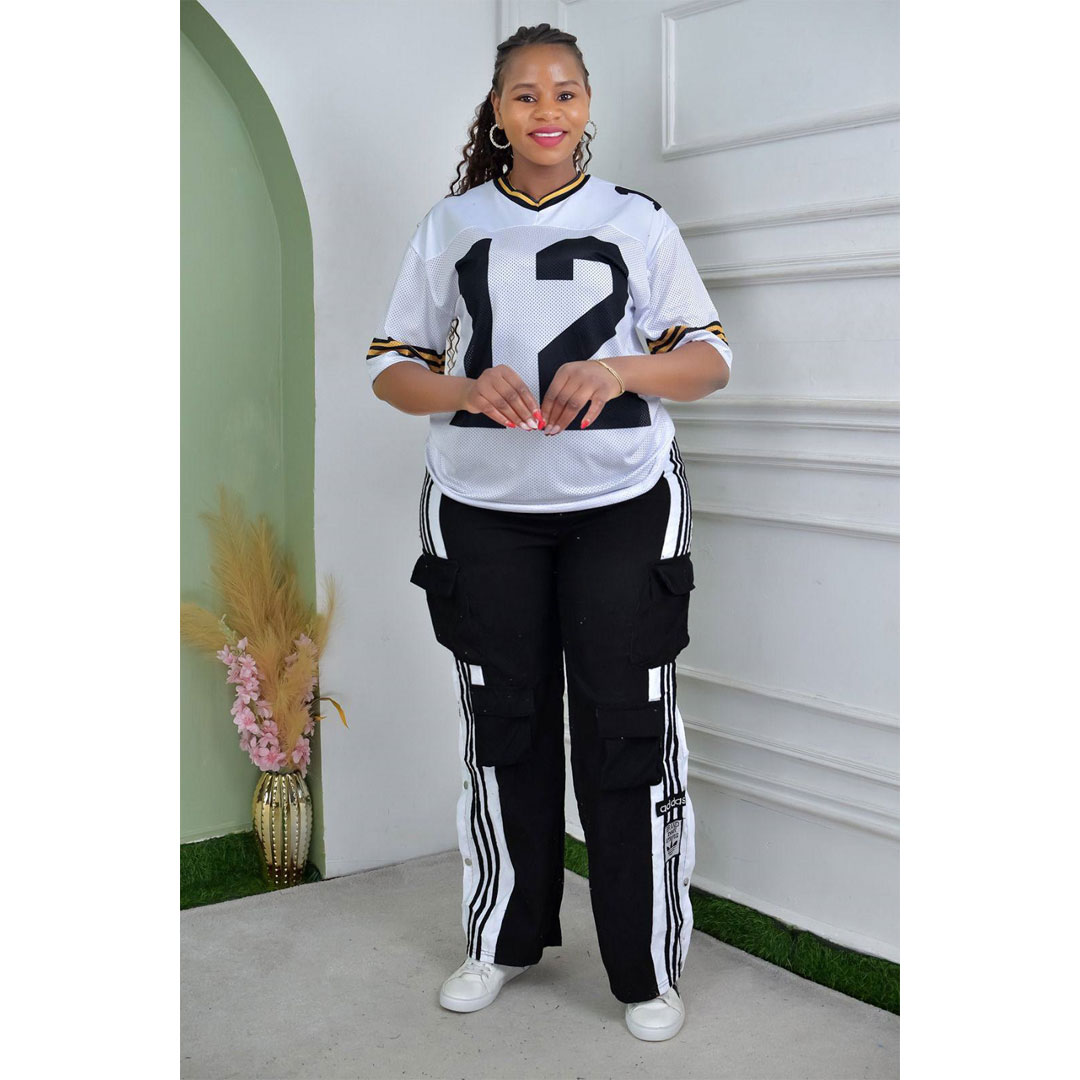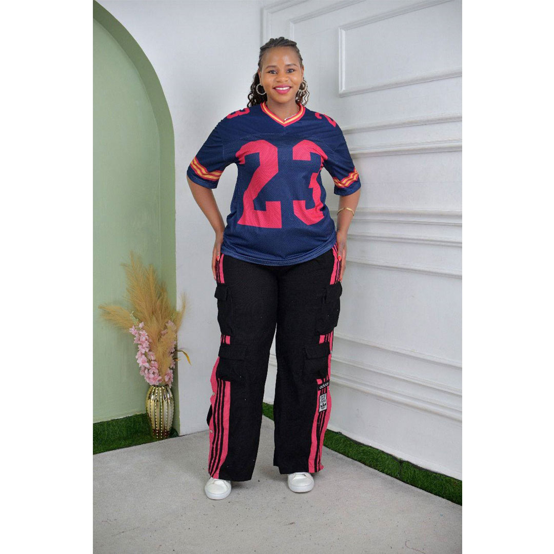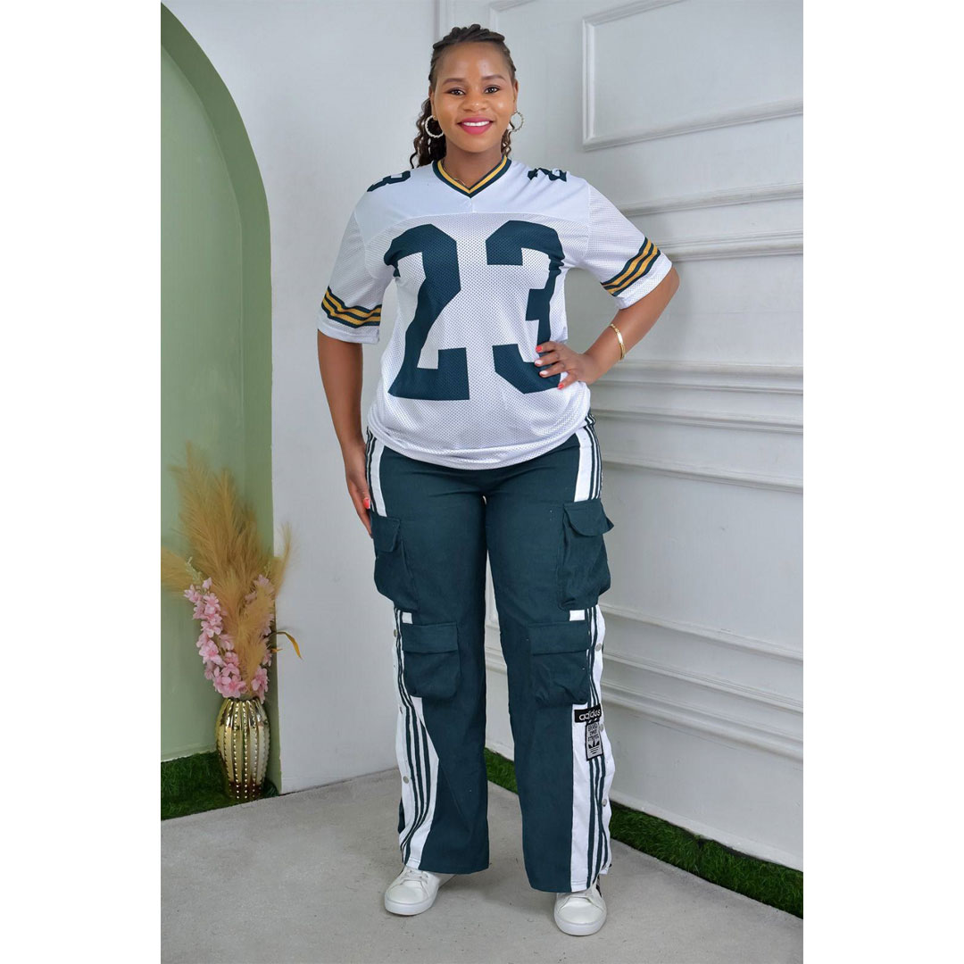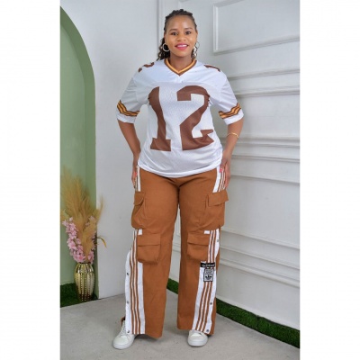African new women’s corduroy fashion multi-pocket pants digital printing short-sleeved T-shirt casual suit, the suit includes: multi-pocket pants, digital printing T-shirt