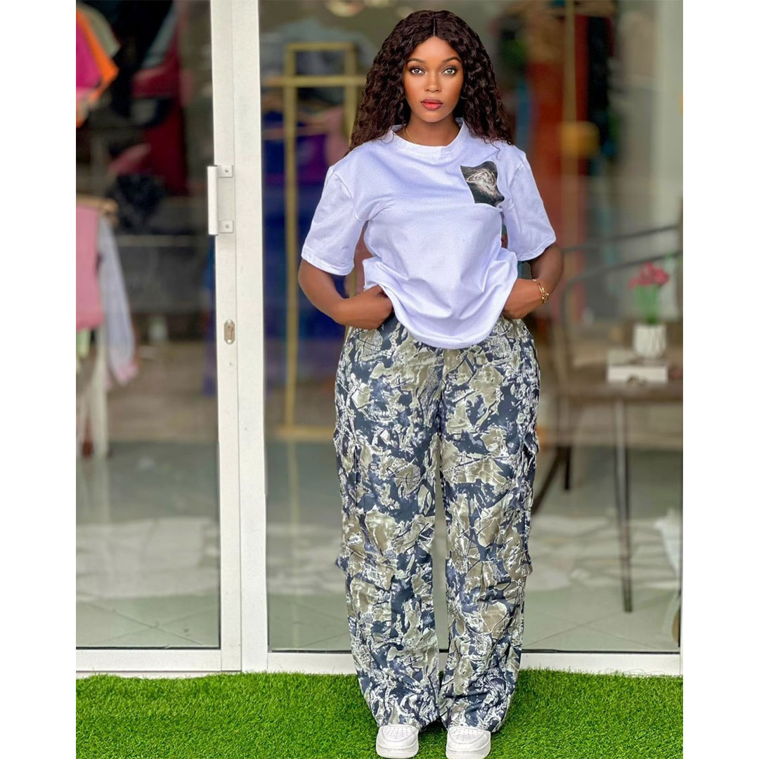 New design plus size fashionable loose women’s straight trend high waist business casual trousers, set includes: loose trousers, T-shirt
