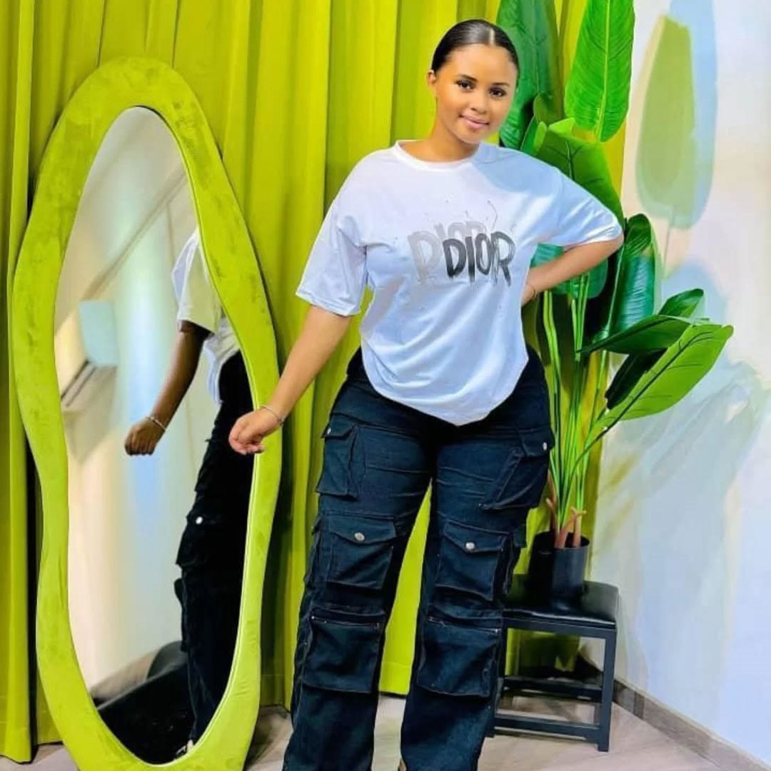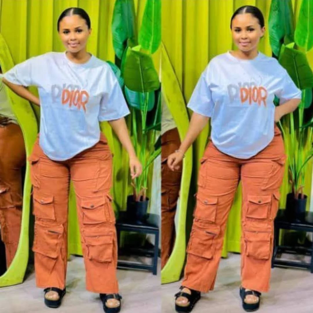 Fashionable custom loose retro breathable multi-pocket high waist women’s pants, set includes: multi-pocket high waist women’s pants, printed T-shirt