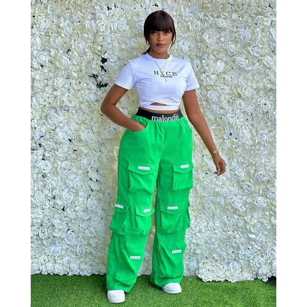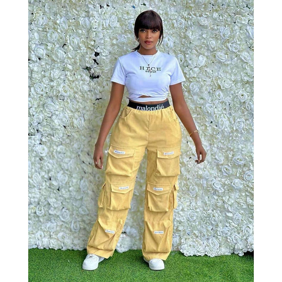 Women’s fashionable corduroy overalls, mid-rise straight-leg style, custom logo, casual summer multi-pocket pants wholesale, set includes: multi-pocket overalls, fashionable vest
