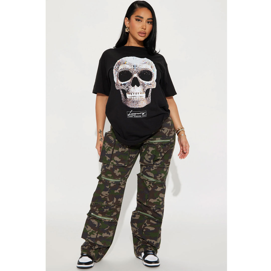Hot-selling overalls for summer, American-style loose straight-leg, new multi-pocket youth pants, women’s camouflage pants, set includes: multi-pocket camouflage pants, printed T-shirt