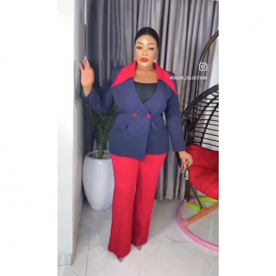 S25127This new stylish and elegant two-piece suit set includes a long-sleeved V-neck blazer and trousers